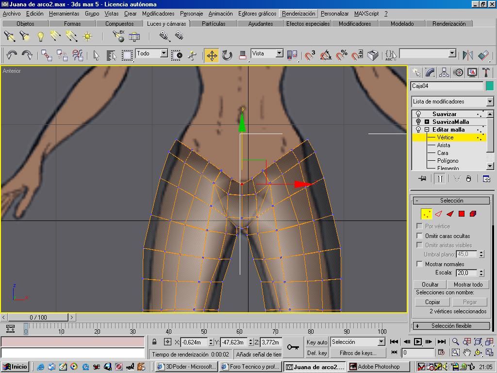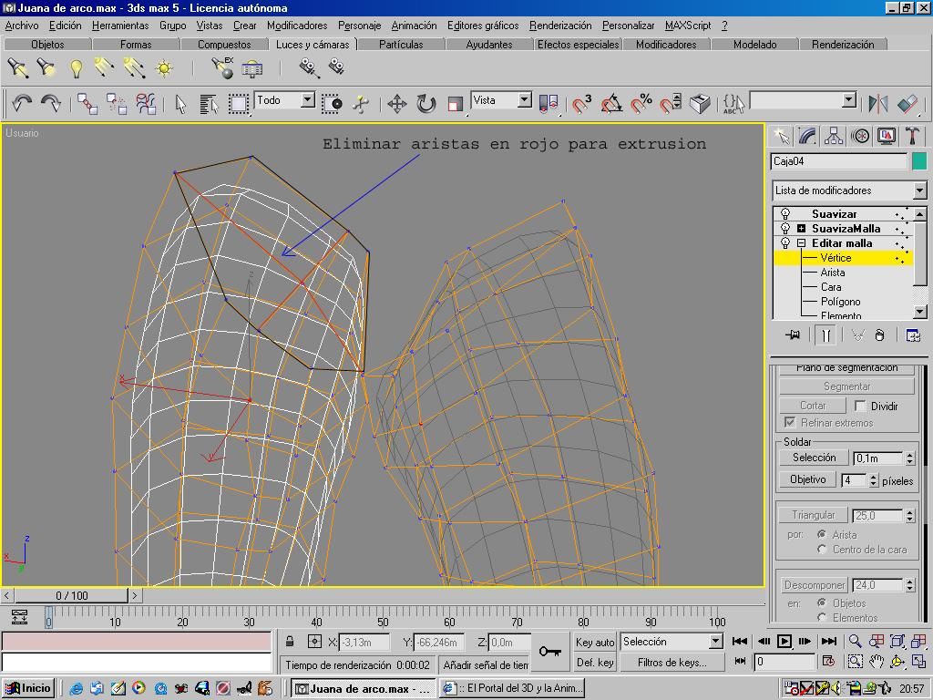 Estoy haciendo el tutorial de Juana de Arco, son mis primeros pasos en modelos orgánicos. Necesito crear una extrusión para modelar la pelvis. Pero creo que me estorban las aristas. Cómo se pueden eliminar sin modificar la Maya saludos.