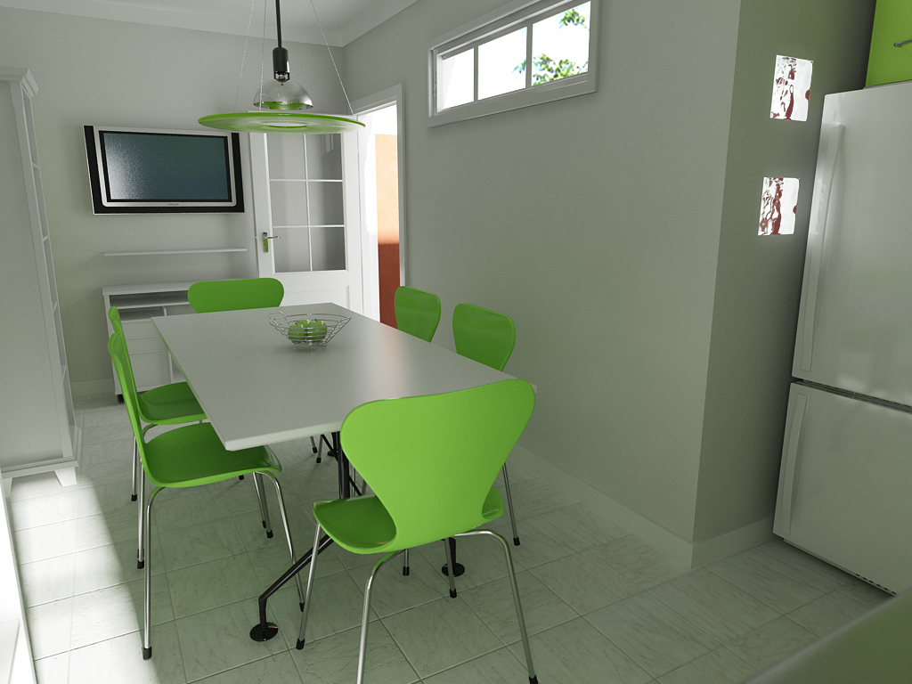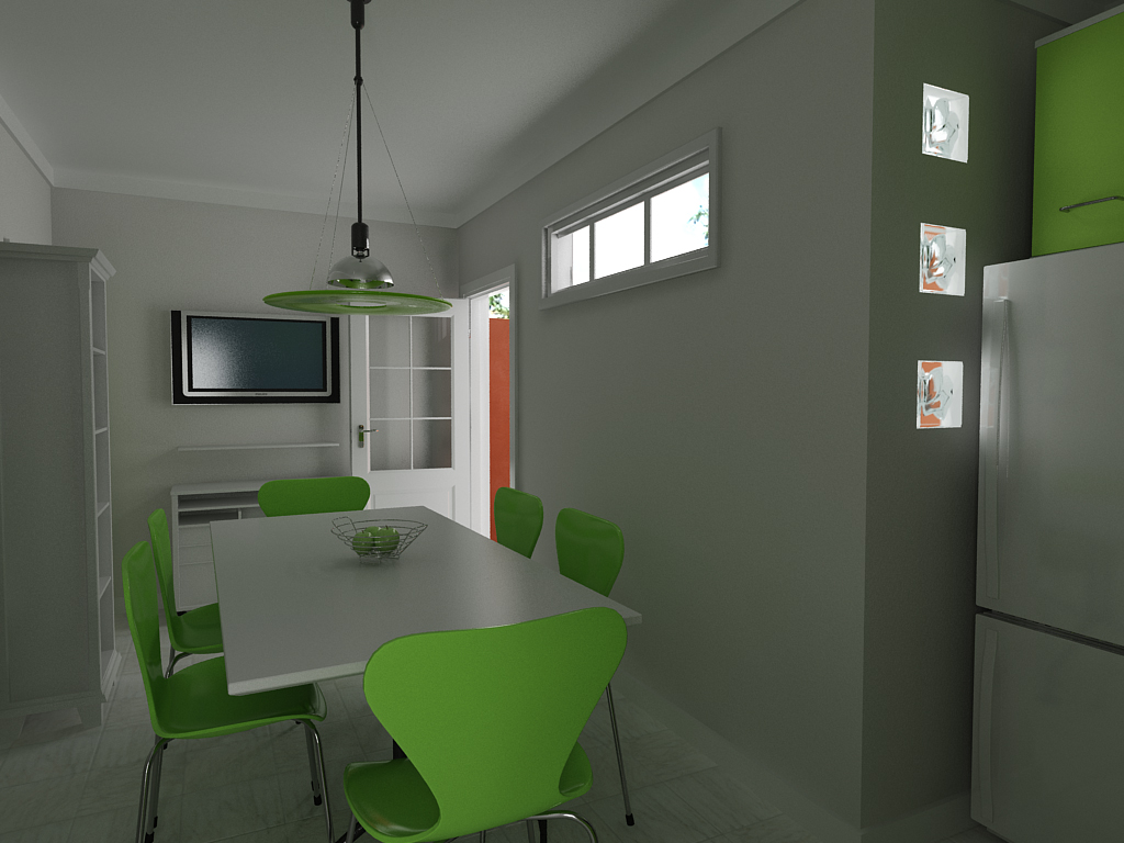 Hola, este es mi primer trabajo de arquitectura, es en espacios reducidos. En total la construcción es de 52m2 y estas son las pruebas de la cocina/comedor. Herramientas max 7 - Vray 1.47 archievermotion (excepto alasenas) y es para simular horarios del día con la luz que trae el 3ds Max llamada Sun. Voy a tratar de generar toda la construcción y medir el nivel de realismo que tiene el Vray antes de que este terminada.