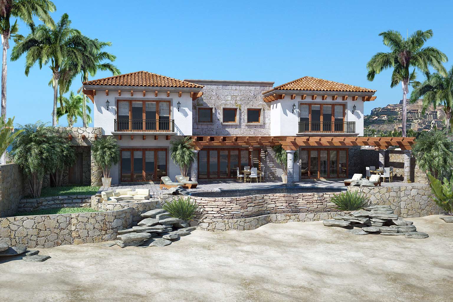 Quizás la arena podría mejorar para además de ser un bueno render que apetezca la casa, incluso probaría con alguna fotografía de arena.