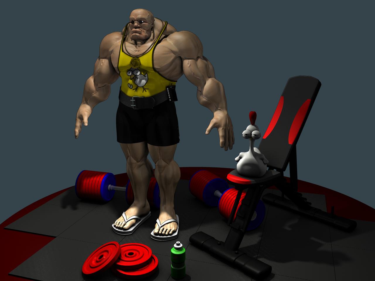 Pobre hombre. Es lo que pasa cuando mezclas anabolizantes con viagra. Excelente modelo, genial el pollo, todo está genial, solo espero que iluminación vas a ponerle.