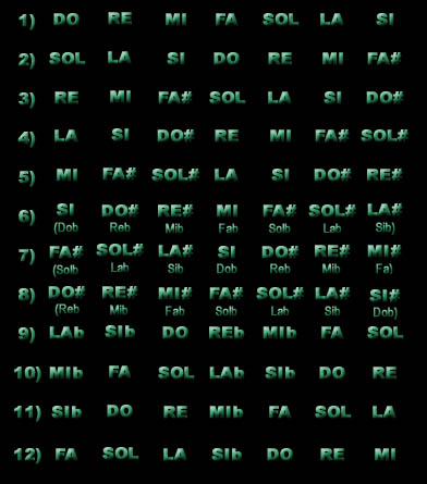 Por motivos de evitar confusiones llamemos jonico al modo corresondiente a la escala mayor (grado1) y eolico (6to grado) al correspondiente al modo menor. Como mencionaba anteriormente, lo que da la qualificación al sonido de una escala y define el modo en que está construida es su combinación de tetracordes o tetraccordios que es, a saber, cada una de las 2 partes en que está dividida una escala. Por ejemplo: el modo jonico o mayor que está conformado en su primera parte por 2 tonos enteros y un semitono, es decir tono-tono-semitono y en su segunda parte por semitono-tono-tono separadas ambas partes por un tono que va del grado 4 (subdominante) al 5 (dominante). De tal modo que la f;ormula para la escala mayor (modo jonico) es, a partir de su primer grado: t-t-s t-t-s. Claro esta que para obtener su escala relativa menor (por decirlo así, su hermana menor) que comparte sus mismas notas, pero para las que cambia su función (por ejemplo, la tónica que en modo mayor o jonico hacía funciones de superdominante) transportamos las funciones de cada grado y no los intervalos ya que la estructura queda igual, pero alterada por el orden que ahora tiene, es decir: t-s-t s-t-t.