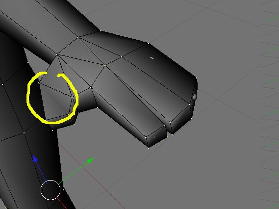 El caso más escandaloso es el de la mano, que al renderizar se ve completamente desecha. Se me ocurre que quizás usando siempre el modo de edición proporcional se pueda solucionar algo, pero es que, entonces pierdo bastante el control sobre el modelado.