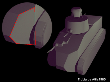Ahiva. Me he explicado mal, mira lo ilustraré con una imagen del propio carro de combate. Lo modelé hace unos tres años y no cumple mis expectativas y quiero rehacerlo. El polígono quiero que sea plano y no sé cómo hacerlo. Veo que te estás molestando mucho y te lo agradezco de veras.