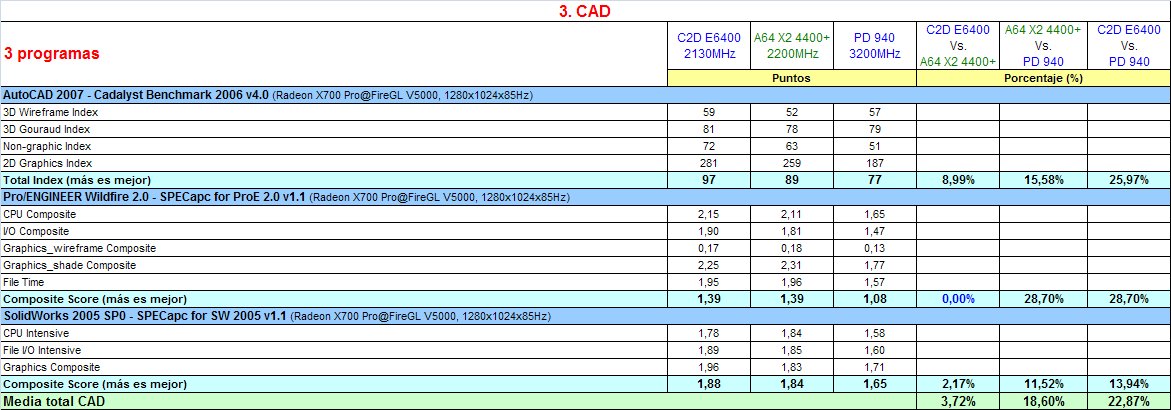 Hola. A lo largo de los últimos cinco meses, he estado pasando en mí tiempo libre (sobre todo vacaciones de verano y dándole el empujón en las de navidad, pasando también las pruebas que he podido entre medías) toda una serie de pruebas con un montón de programas con los sistemas que tengo actualmente, para saber de primera mano que me ofrece cada uno. Los sistemas son basados en los de la firma, es decir, x2 4400+ que lo tengo desde hace año y medio, y C2D 6400, desde agosto pasado, y también he pinchado para incluirlo en las pruebas, a fin de tener una perspectiva más amplia, el Pentium d 940 que tuve al principio en la placa Asus.