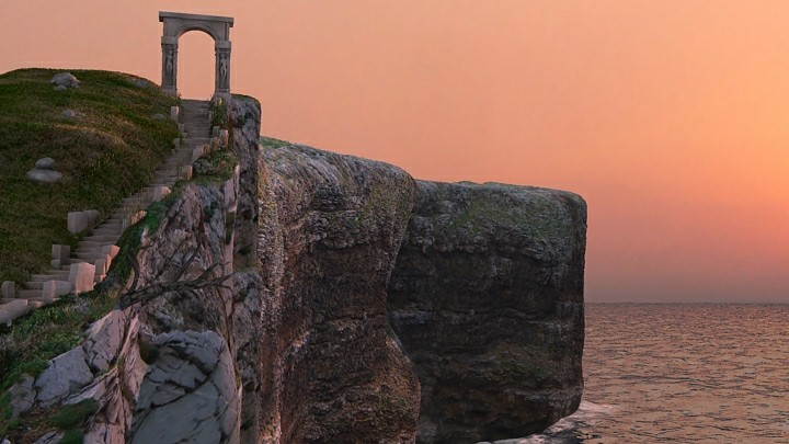 Por otro lado, me parece un trabajo muy bien conseguido. Aunque los detalles son los que cantan. Haz las rocas que dan al acantilado estén algo más escarpadas, no tan lisas.