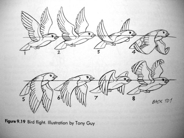 Va por muy buen camino, cuida un poco esos pájaros, que además de ir muy rápido, la animación del aleteo es rara. Las alas se quedan demasiado tiempo en la posición baja. Mira, aquí te subo una secuencia más o menos correcta de aleteo:
