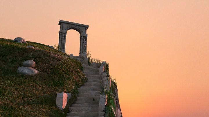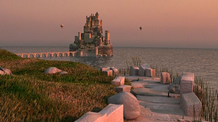 Es una civilización idílica y agrupada en una isla, con sus casas, y su castillo. Todo parece tranquilo hasta que una lluvia de meteoritos acaba con la ciudad.