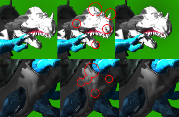 Hola. Un saludo a todos ya que es mi primer mensaje en este foro. Os cuento, a ver si alguien me da alguna clave: La imagen que adjunto está formada por partes de tres fotogramas que van correlativos, pero si os fijáis en los círculos rojos aparecen una manchas que durante toda la animación han decidido joderme.
