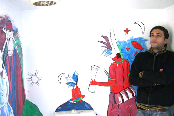 Que paranoia, tiene una explicación el mural? Nos la podrías contaré parece como un cuento. Si te e de ser sincero tu estilo no es mi fuerte, pero el retrato del hombre con la niña me gusta mucho, y da un poco de mal . Cuando tardaste en hacer el mural?