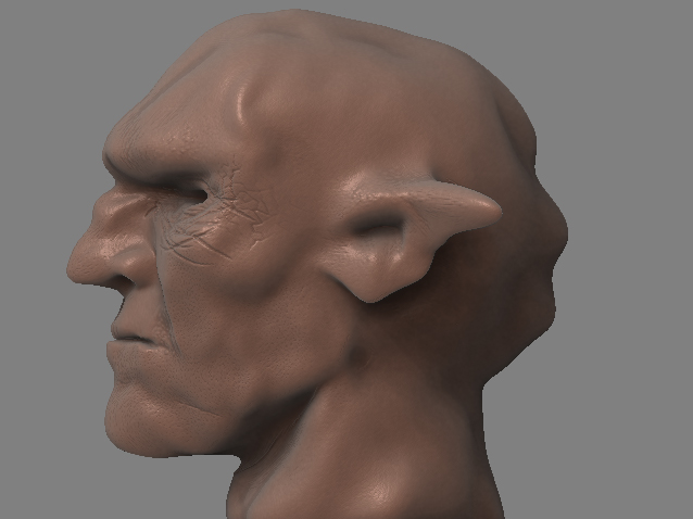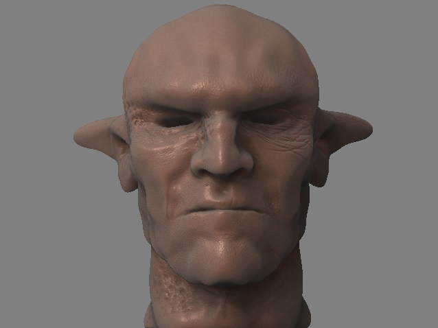 Hola. Primero que nada saludos, y una pregunta, estas modelando solo con ZBrush? No usas otro software para empezaré pues podrías usar 3ds Max para el modelado en Low poly, y ya de ahí perfeccionarlo, así puedes usar unas esferas para los ojos, y también ahí hacer el pelo, también trata de darle más separación a las orejas y darle forma menos cachipoda a la parte trasera de la cabeza.