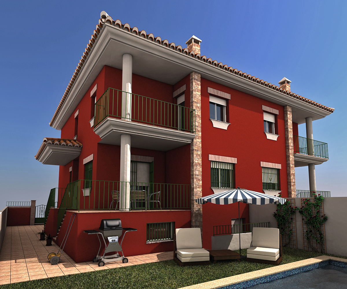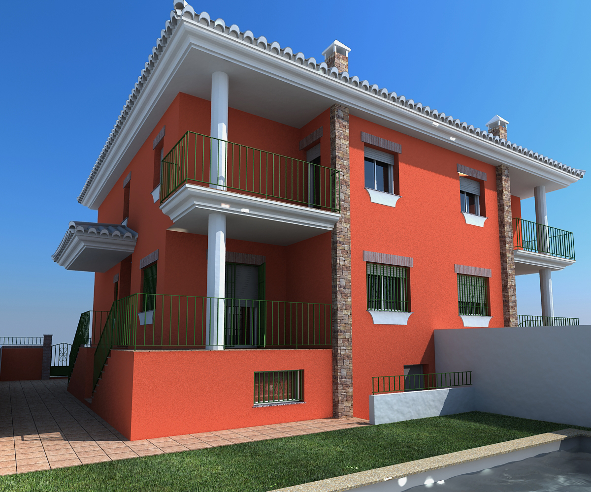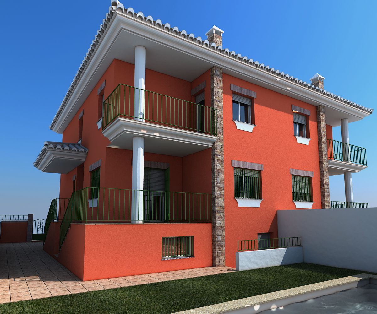 Cram, la fuga he tenido que forzarla a una lente de 25 milímetros creo, porque mi intención es que se pueda ver la piscina y el agua de la piscina, por eso he puesto también la cámara muy baja. La verdad que se ve muy exagerada, tengo que darte la razón, pero si me explicas eso del cámara correction para que no fugen las verticales, o algún enlace que lo explique, probaré a cambiarla. Un saludo.