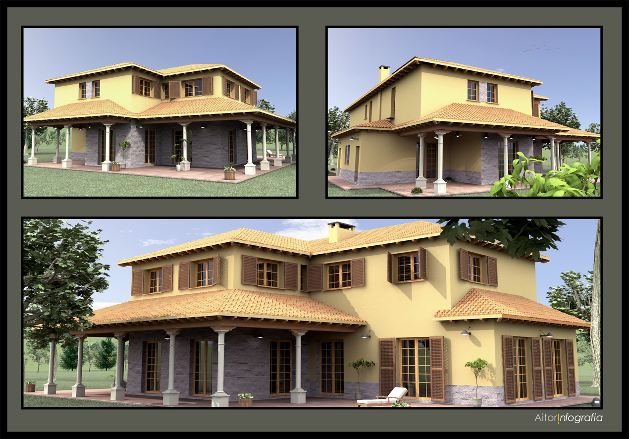 hola a todos. Esto es unos trabajo algo distinto a los que suelo hacer en infoarquitectura (suelen ser más tipo racional o minimalista). Es un modelo de casa tipo inglesa.