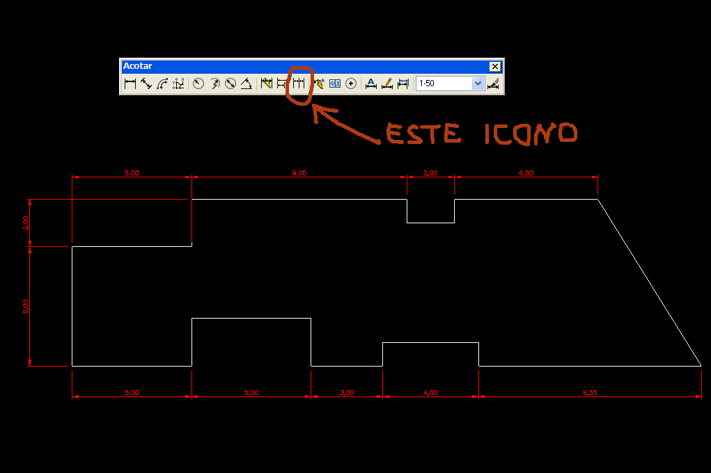 No he entendido demasiado bien lo que ha comentado Fiti, pero supongo que, es muy parecido a lo que hago yo. Una vez tienes una de las cotas a la distancia deseada, el resto las vas poniendo con referencia a la última cota. Así salen todas alineadas.