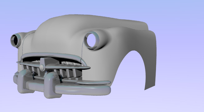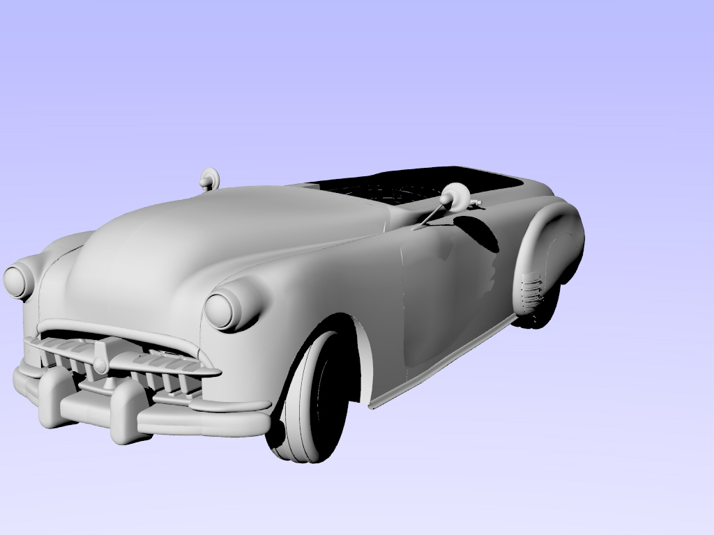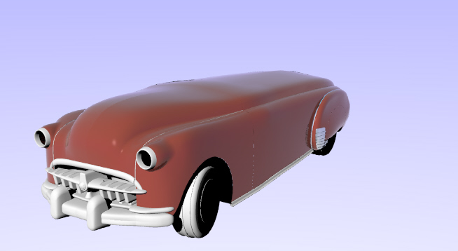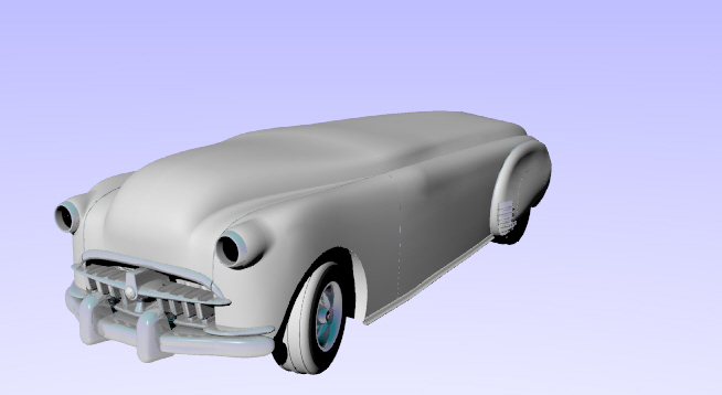 Bueno este es mi primer intento serio de modelar un coche, está realizado con Rhinoceros y de momento está en una fase muy temprana. El modelo de referencia es un Pontiac chieftain del 1949.