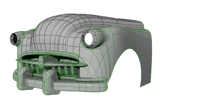 Tienes una manera muy extraña de distribuir la topología, creo que te va a dar problemas. Cosas como las que estás haciendo en la aleta trasera del coche, no van a funcionar. Tienes que intentar que los loops, sean más continuos.