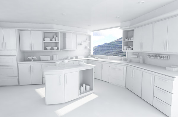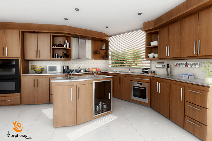 Hola tío, está muy bien la imagen, un trabajo muy bueno, hay un par de cosas que podrías mirar, por ejemplo, los spots, creo que están un poco fuera de la pared, están un poco raros, luego en la columna con los hornos, se ve demasiado simple (un horno tiene rejillas, botones, leds luminosos), se ve un poco soso, si pudieras darle más caña a lo mejor quedaría mejor.
