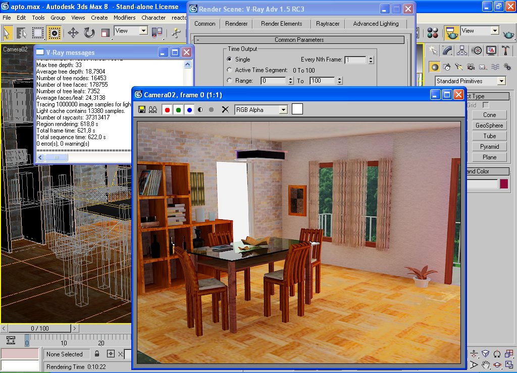 Será normal que este archivo de 3ds Max, modelo normal, texturas normales, iluminación Vray, no sé que paso, ahí les dejo el archivo con materiales y demás, configuración de Vray y todo como lo tengo, en mí portátil Dell m90, Dual Core me sale 596 horas, lo intento de renderizar en otro equipo de un amigo e igual, ¿mi petición es la siguietne: alguien puede mirar el archivo, chequearlo, tanto materiales y Vray, para ver si es normal o si me excedí en alguna cosa en materiales o en render, o no se? En si la escena es sencilla, no sé que ppaso, uso 3dsMax 8, y Vray 1.5, gracias, mi correo es Kalvin@hotmail.com, por si me desean guair sobre los parámetros del Vray o materiales, gracias.