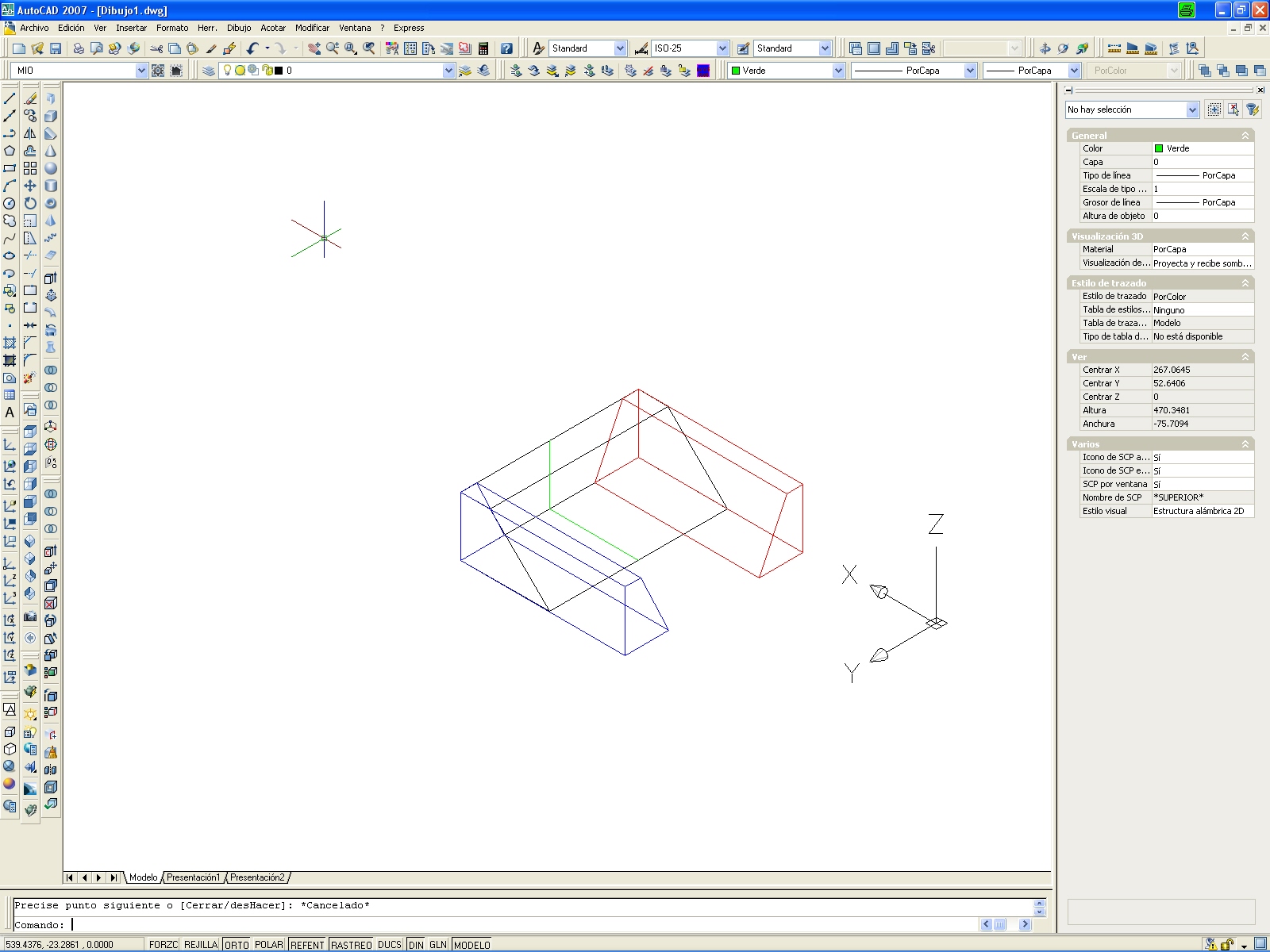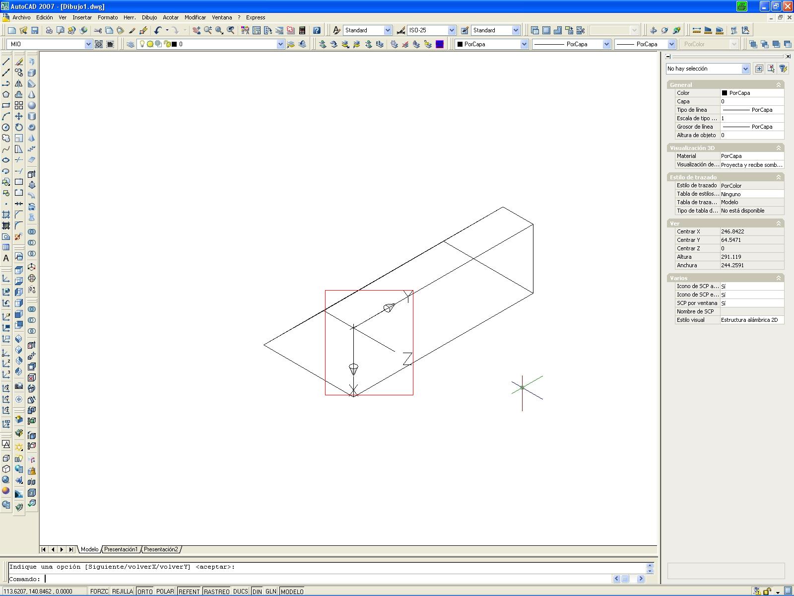 2- Paso a vista isométrica se y extrusiono. Cambio el SCP y lo pongo en la cara trasera (ves los ejesí). En vez de poner aquí el SCP podría usar el ducs, manías.