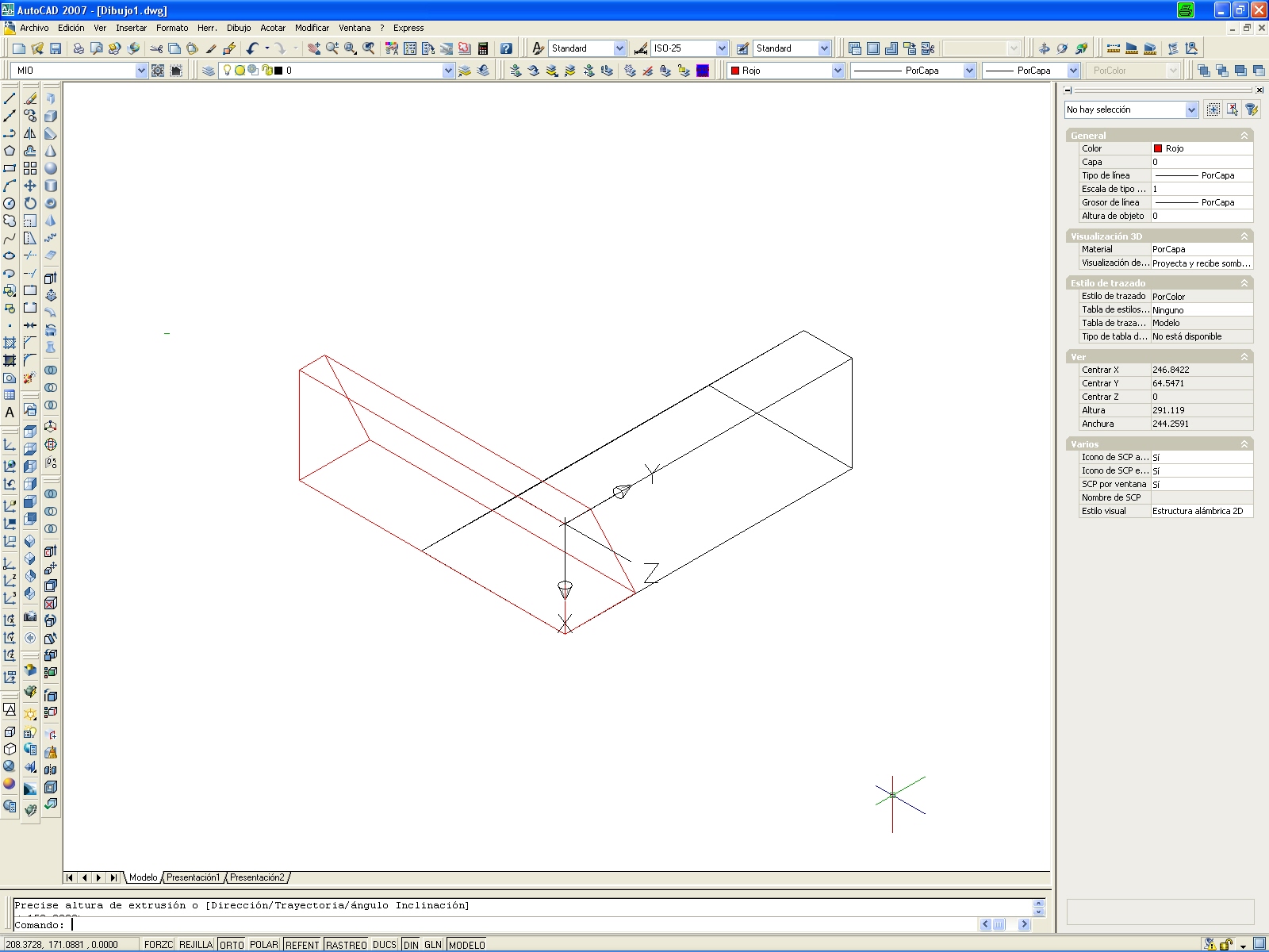 Bien acabo de mirarlo y es que AutoCAD 2007 me está volviendo loco, porque creo que le faltan comandos o barras de herramientas que antes tenía la 2006 y ahora la 2007 no, porque he probado no a usar el símbolo de extrusión que me has indicado tu, si no a ejecutarlo desde la línea de comando, y así si que me lo ha echo. Pero ese comando debe ser distinto al extruir que ahora está en la zona de solido, porque es extruir cara, en fin, y me dado cuenta que en la 2007 falta algunas barras de herramientas en torno al 3d, sobre todo en torno a superficies. Bien, voy a probar con esto, gracias y saludos.