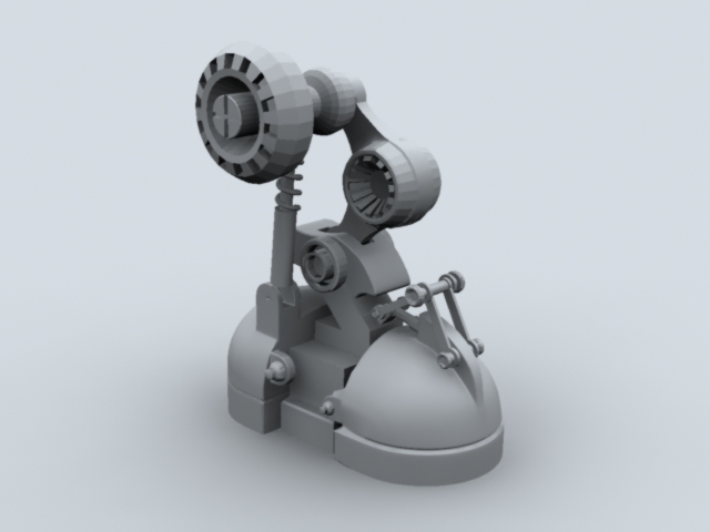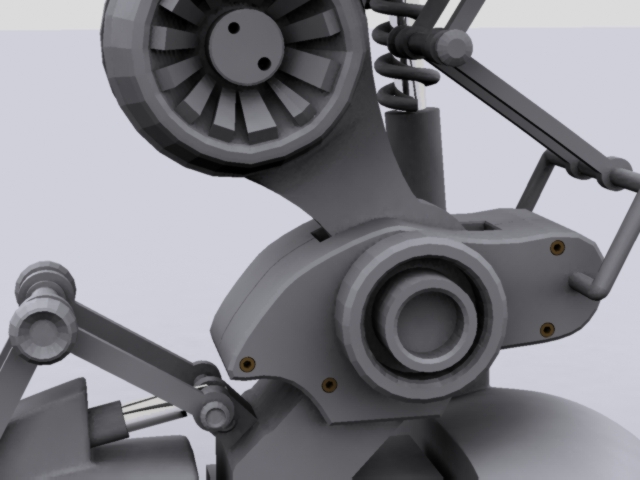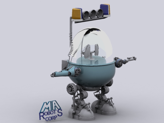 Tiene muy buena pinta, ya lo creo. Esas piernas están muy logradas, la forma en que se juntan los engranajes está muy bien planteada, me gusta mucho tío, enhorabuena. Por poner alguna pega no me gusta mucho como quedan las luces y las sirenas encima de lo que es la cabeza, yo le buscaría otra solución, igual integrándolo dentro de lo que es la propia cúpula que hace las veces de cabeza. Como lo vas a animar? Hk, IK? Me muero de curiosidad. Un saludo.