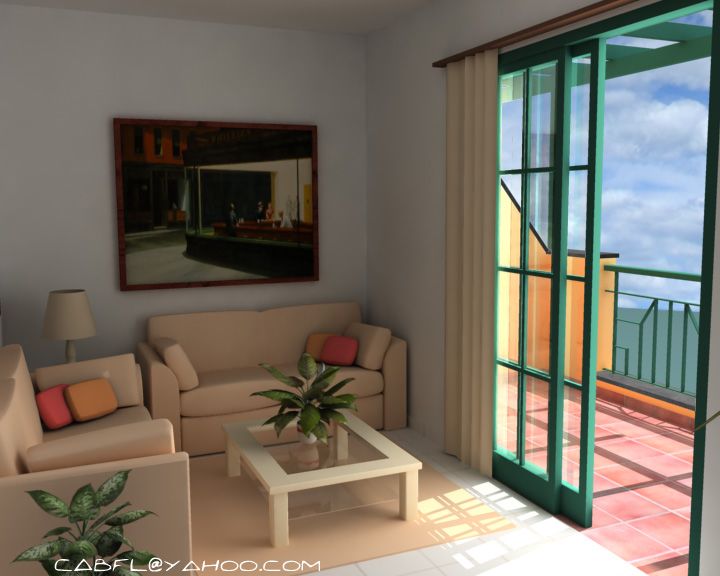 Está muy, pero que muy bien, yo estoy con Ballo en que las reflexiones del cristal son las oportunas y que son las mejores que he visto. Las malas reflexiones que he visto en otros renders los afean mucho, por no decir que los machacan. Nos podrías decir, si puedes, en pocas palabras, que tipo de material has asignado a los cristales.
