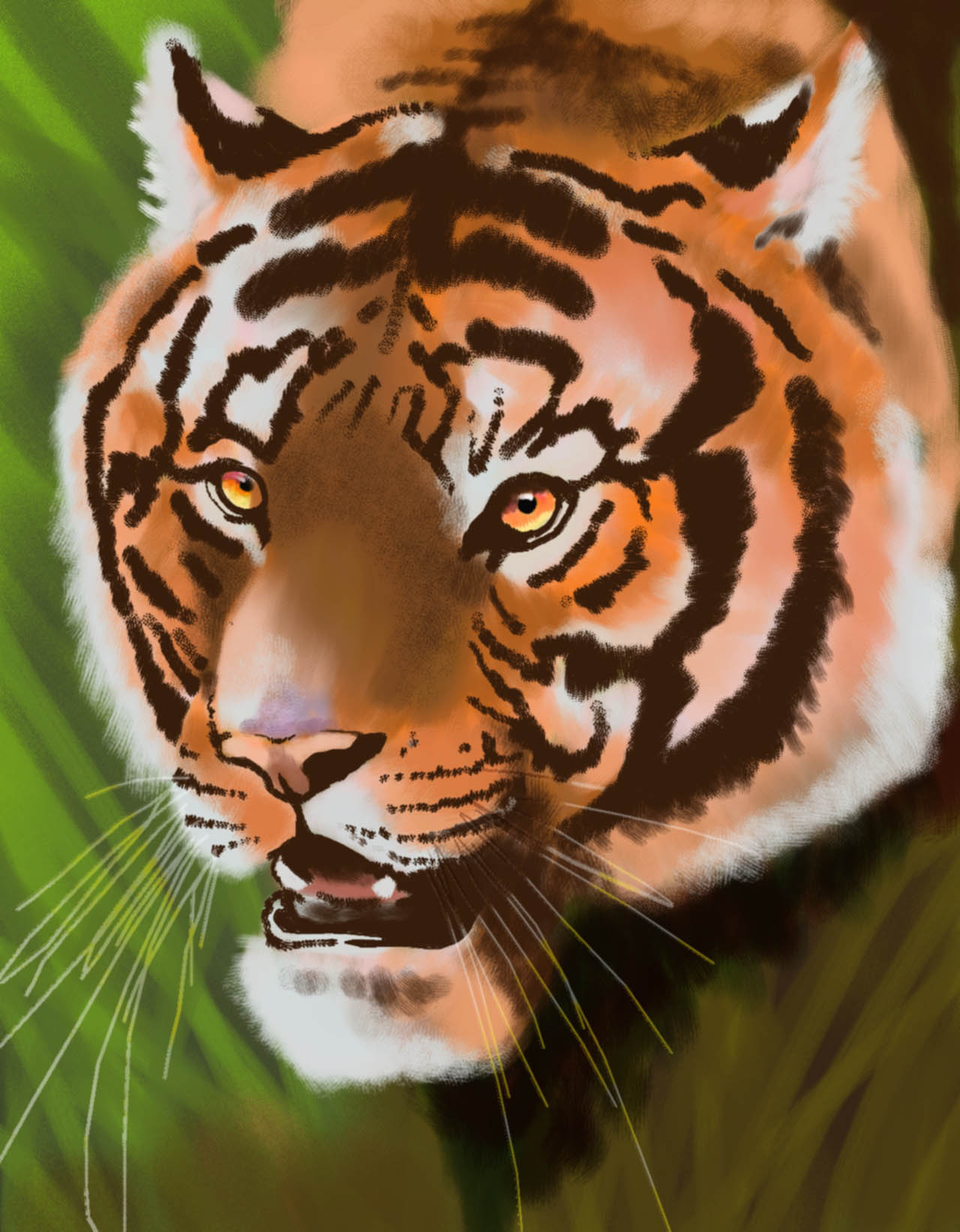A mí tampoco me convencen los bigotes, y creo que el entreceja? () quedan un poco raro, no sé, parece una mancha negra en la cara del tigre. Eso sí, la expresión del tigre es una pasada, esta acechando a su presa, me mola.