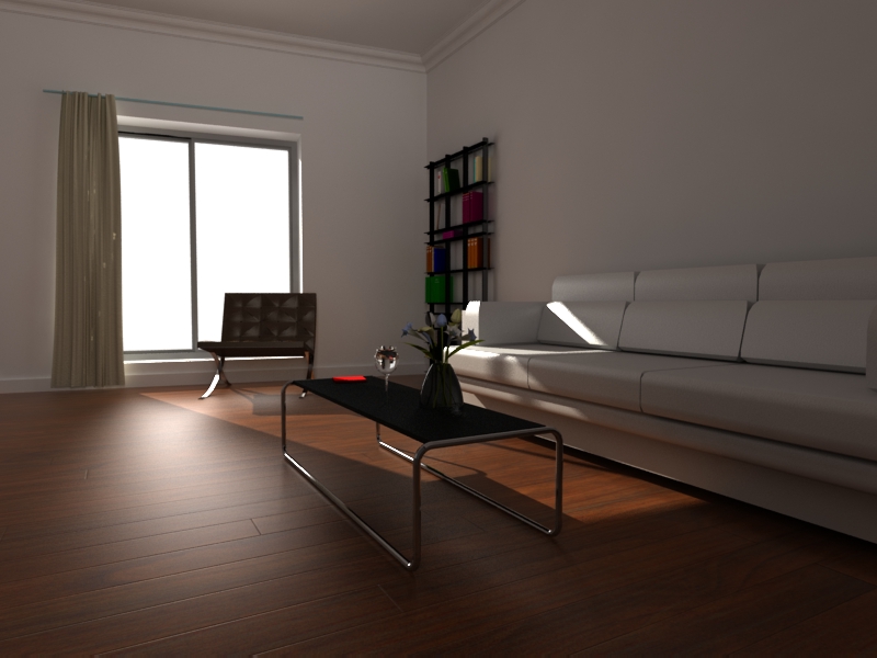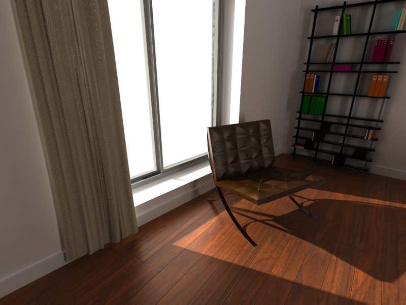Buenas. Me gusta cómo te está quedando en general, un detalle nada más, el sillón Barcelona (es el Barcelona de mies ¿no?), le cambiaría la textura de las partes metálicas, buscaría algo como inox, y el acolchado trataría de trabajármelo un poco más. Un saludo.