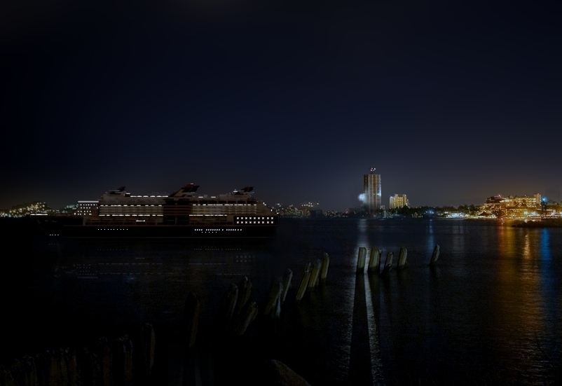 Este barco es parecido al constellation y ese barco es recontra cuadrado y lo de la proa me parece que es por la reflexión.
