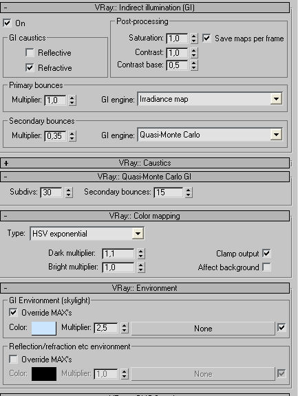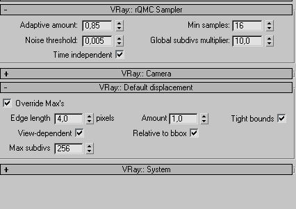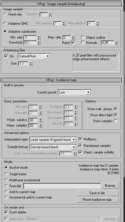 Hola antes todo gracias por la ayudad, aquí adjunto los parámetros, espero que sea de ayudad. En cuanto a al escena está en 3dsMax 8 y el motor de render es Vray 1.48.03.