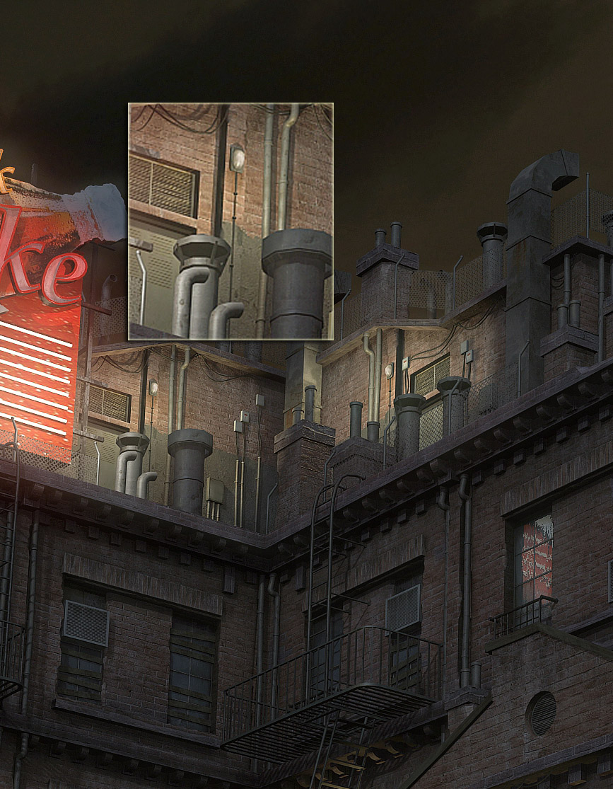 Muy buenas a todos, esta es al última imagen en la que he estado trabajando estos últimos meses. Como siempre todo está modelado en 3dsmax, la iluminación con múltiples luces, un domo para simular una Skyline y spots para los puntos de luz principales, para el render use Scanline. Toda la postproducción de la imagen está hecha con Adobe Photoshop y Combustion.