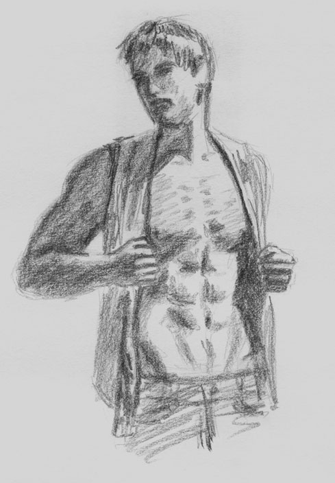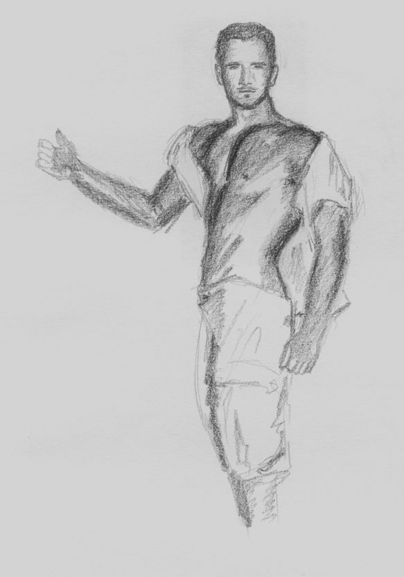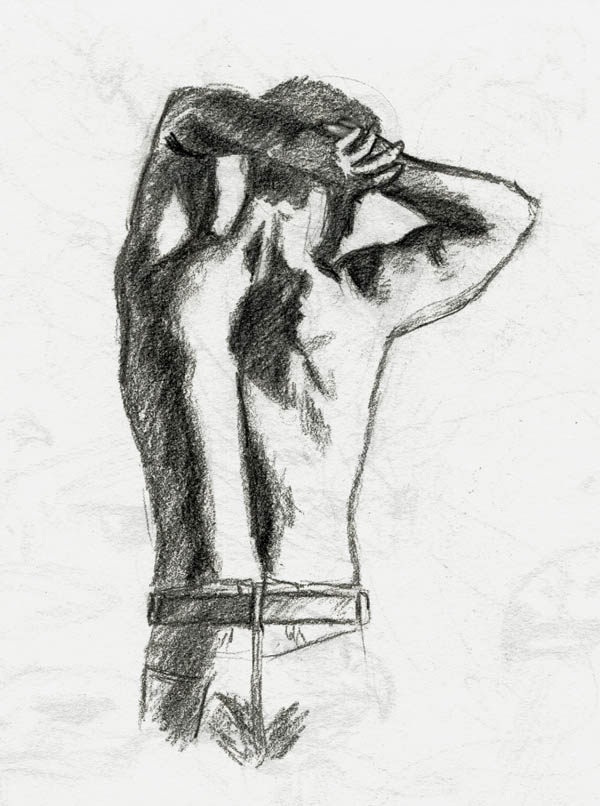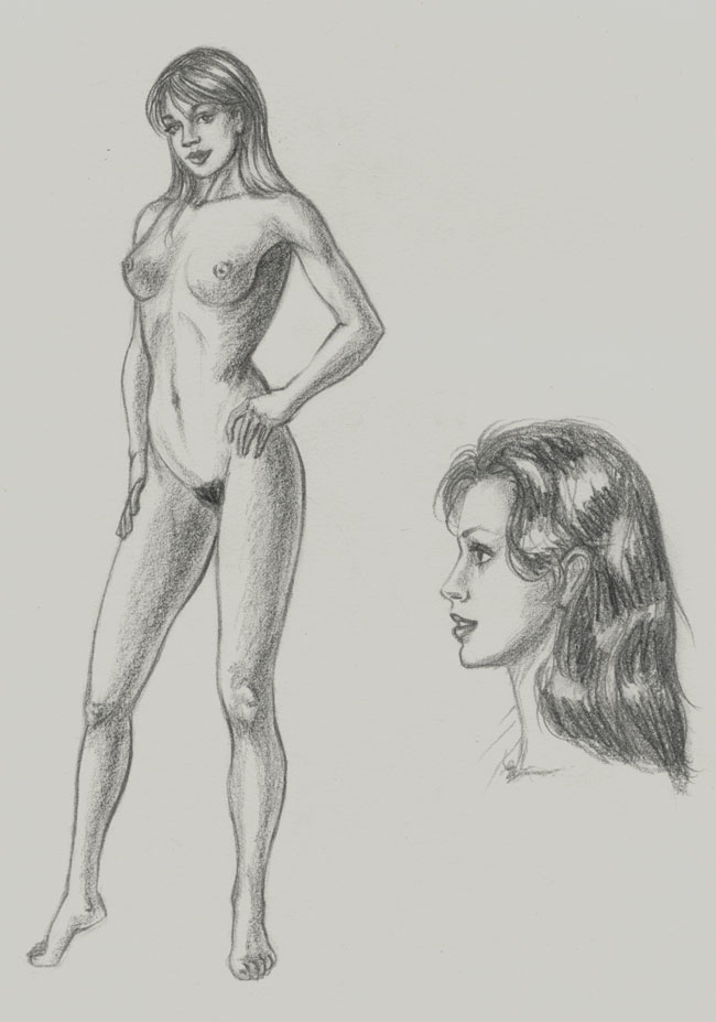 abro este hilo para ir mostrando los resultados de seguir el consejo de Slime. Me recomendó que, para aprender bien anatomía, debía copiar fotografías, muchas fotografías. Ya lo vengo haciendo desde hace tiempo, pero ahora ya conseguí que me funcione el escáner y puedo ir subiendo esbozos y cosas (aún uso más el lápiz que la tableta). Lo único que mi escáner no es ninguna maravilla y saca las imágenes muy claras, con lo cual tengo que aplicar niveles o contraste y claro, tal vez veáis el dibujo un poco oscuro, dependiendo del monitor que uséis.