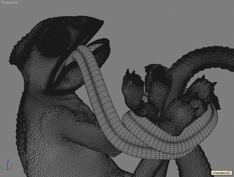 Vaya tío. De verdad hacía falta tanta subdivisión en el camaleón? Pensaba que las escamas era una textura con Bump.