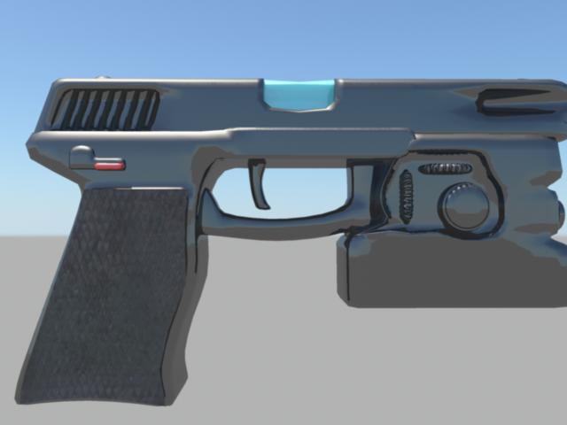 Otra cosa es que cuando se modela un objeto (como un arma) muchos cometen la equivocación de modelar en una sola pieza, al menos veo que tú no, pero aun así sería bueno que analizaras mejor el diseño e intenta separarlo en más piezas, así lograras un mejor look.