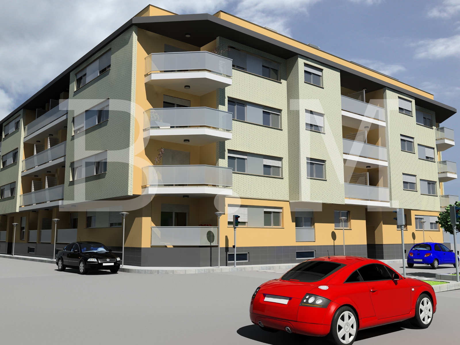 Hola tío, buen curro de modelado, en el tema de la iluminación podrías darle más caña, con algo de postproducción en Adobe Photoshop, algo más de calidad a las imágenes le sacarías, la única pega que le veo es el asfalto y la acera, se ve un poco rara y el asfalto se ve demasiado gris, además el paso de cebrase ve que tiene mucho grosor.
