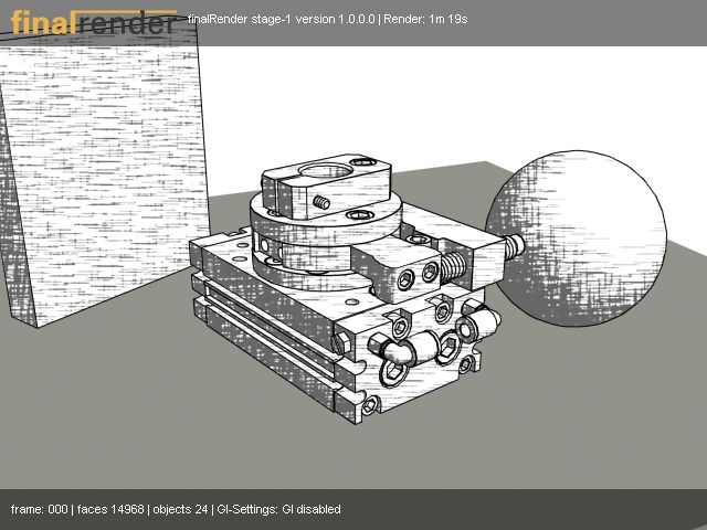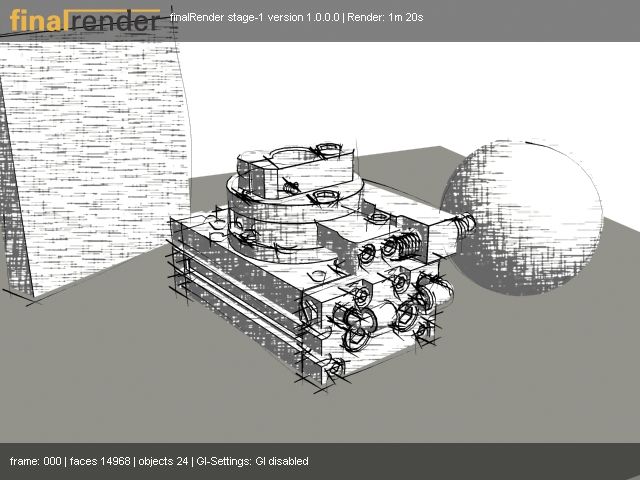 El Final Toon me está agradando. Creo que es bueno especialmente para ilustración. Aunque han metido el tema de los reflejos de líneas de dibujo, creo que aún falta una revisión de estos para estar a la altura de lo demás, han intentado hacer algo que la competencia no tiene y se han quedado a medio camino. Una lástima, el control de las líneas de dibujo parece muy bueno. Respecto a FinalRender. Stage1. Los reflejos parece que están muy optimizados puesto que los renders me parece que van bastante rápidos. En especial con blur aplicado a los reflejos que antes me costaban un huevo de tiempo.