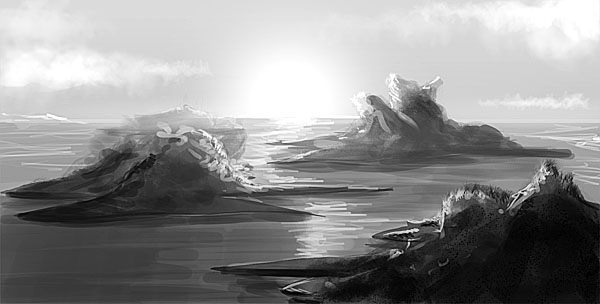 Si, es un poco rara la composición la verdad. Mi intención con el arroyo blanco era como si fuera un crater lleno de lava que ha hacia la explosión, a lo mejor le falta algo más para indicar esto.