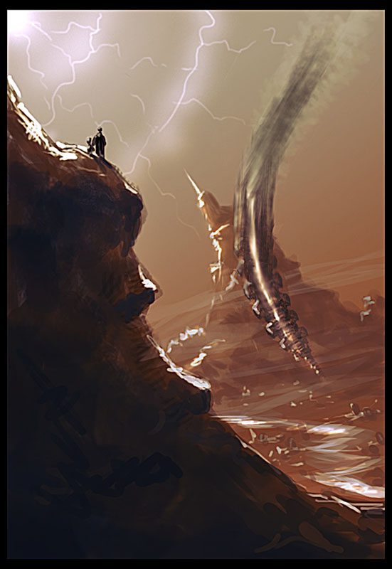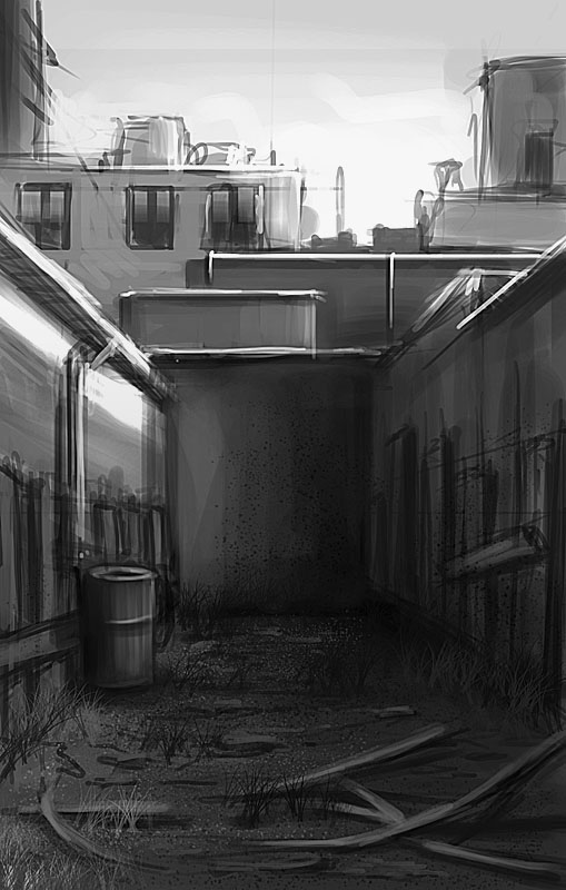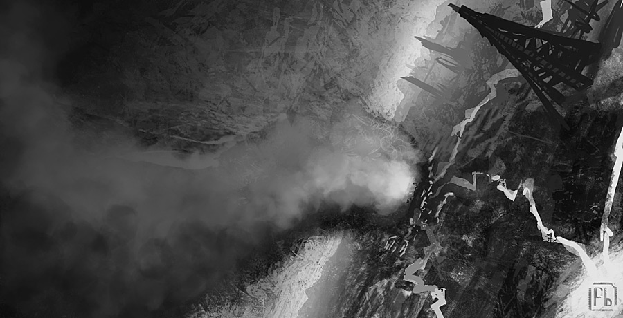 Cada semana se hace un mini concurso en conceptart, org. Dan un tema y la gente dibuja un entorno en 1 semana. Ahora que lo veo con ojos frescos, está demasiado guarro todo, le metí una textura a toda la imagen en overlay, pero me he pasado.