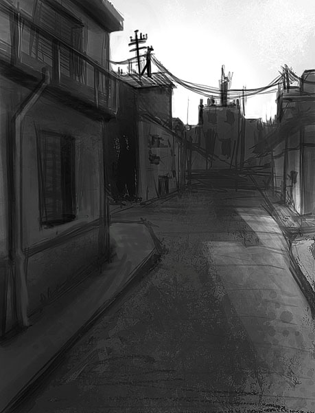 Por cierto, el esbozo anterior, el de la calle, me gusta mucho.