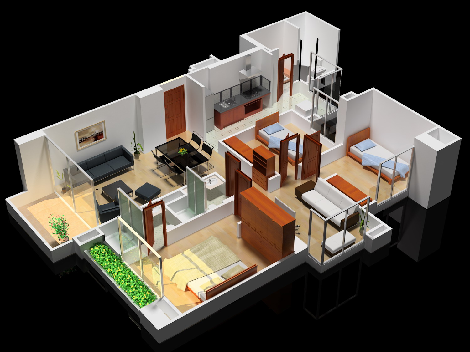 Hola, gracias por el comentario, que el sol entre solo por las ventanas esta medio trucado, no es que no hay techo, en realidad hay, pero invisible, o sea tiene un material Vray con refraction y no le tildas el affect shadow, entonces la luz no traspasa.