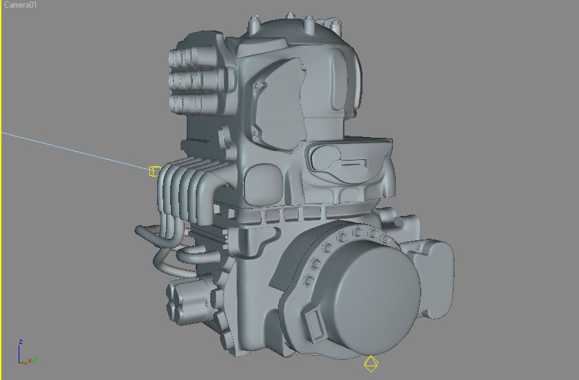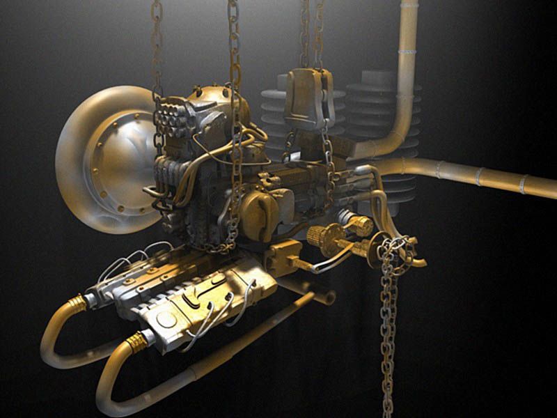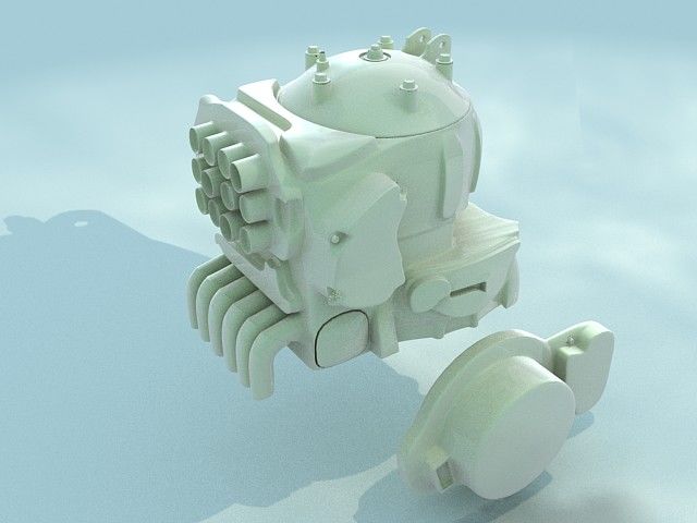 Hola compañeros. Ya ha cruzado una idea por mi cabeza, he empezado a modelar este motor para crear una imagen (muy importante). He puesto este color porque quedaba chulo para render, es más bien para un jarrón que un motor, pero es que, pasaba de ponerle una textura de metal sin trabajar y romper el modelo llamando la atención con una mala textura. Antes que me digáis alguna crítica, sí, correcto, esa bola de abajo a la izquierda voy a formatearla. Bueno pues eso es, es el principio del principio, ya iré adelantando cosas. Saludos.