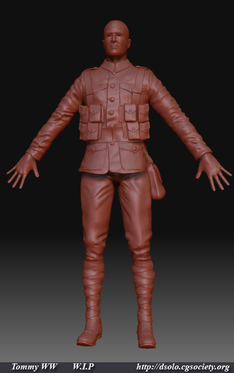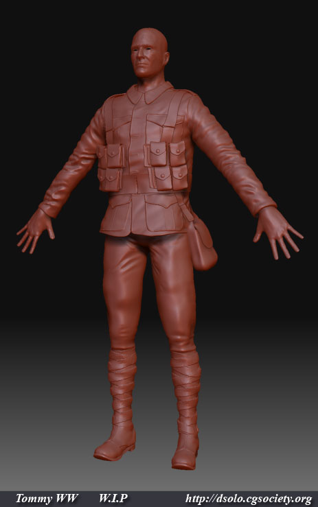 Estas usando imágenes de referencia para hacer la ropa? Entre otras cosas lo digo porque el diseño de la parte superior de las botas esta col, pero no sé por qué, no se integra con el resto del personaje, el diseño no parece militar, seguro e equivocó y son militares, pero a mí no me encajan.