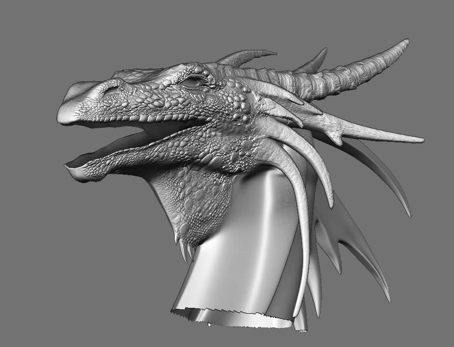 Gracias Jmturbo y Paco, mi máquina esta llorando por como la estoy castigando con este dragón. Otro avance, faltan retoques sobre el top del cráneo y empiezo con el cuerpo: