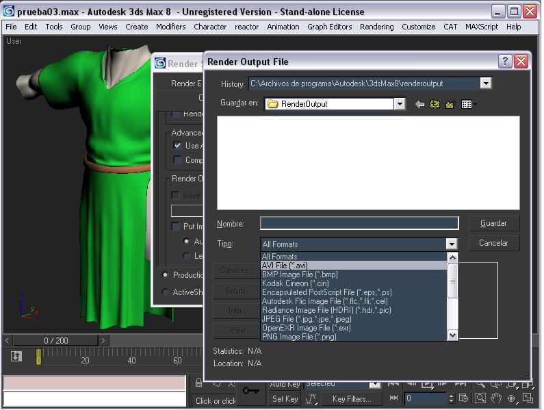 Necesito saber cuál es el setting para tirar un render, tipo avi, es una animación de un logotipo, es muy simple. No sé porque no me lo está haciendo, es decir, hace el render, pero no lo guarda. Me esta comiendo la cabeza.