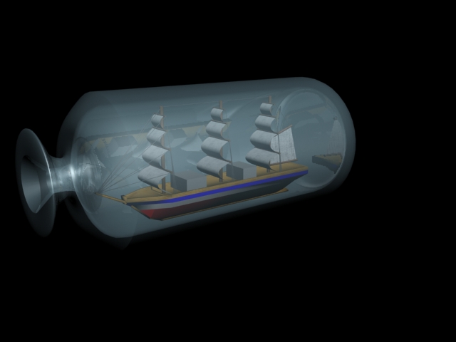 Hola, estoy trabajando para hacer una animación y esta se va a tratar principalmente de un barco en una botella, bueno aquí les dejo, algunas imágenes, critiquen, y a ver qué se puede acer, ha otra cosa, ¿cómo puedo buscar texturas? Ni idea, por algo pregunto, ha otra cosa, ¿alguien me puede regalar un ordenador? El mío es un insulto a los ordenadores, no, a la tecnología, imagienense, la fuente de poder es a carbón.