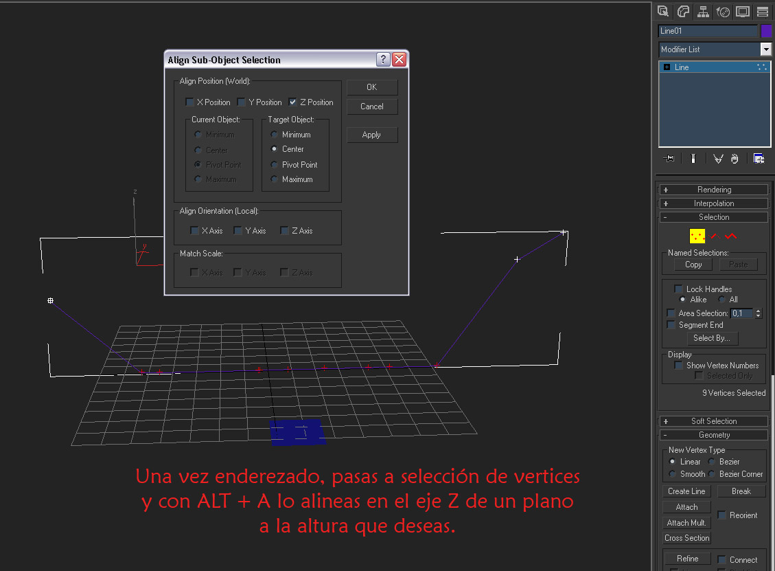 Poner a nivel a la vez vértices de una spline