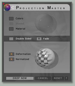 Para añadir recurriremos a una parte del programa llamada projection master, es una herramienta completa destinada a 2d, texturas, materiales, etc. No obstante también tienemos la posibilidad de utilizar zadd y zsub, por lo que será muy práctico ya que desde aquí podremos utilizar distintos pinceles y opciones para generar detalle más preciso. El funcionamiento es distinto, ya que no esculpimos, tan solo pintamos y al volver aplicara esos cambios sobre la malla. Al ser una herramienta 2d, no podremos manipilar el modelo (girar, mover.) de este modo el procedimiento, se realizara entrando a projection master, saliendo para aplicar cambios, girar el modelo y volver a esta herramienta. Así hasta finalizar los detalles del modelo, pasamos a la practica, pinchar en el icono de projection master que aparece en la parte superior izquierda. A continuación aparecerá una pantalla donde quitaremos la opción colors, y seleccionaremos deformation. Ya que únicamente lo vamos a utilizar para aplicar detalle a la malla.