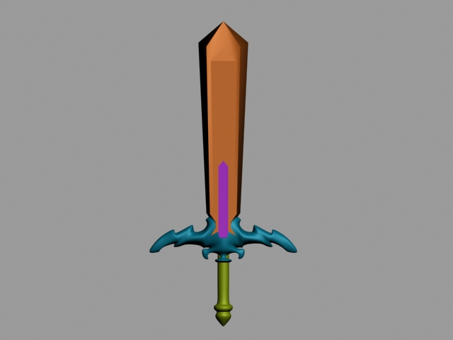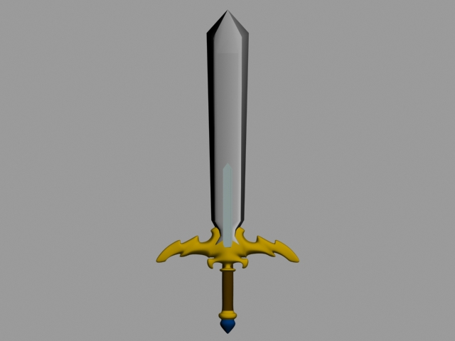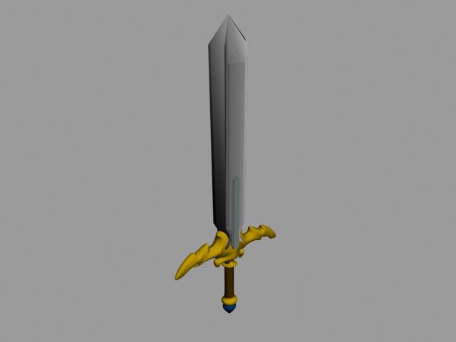 Esto solo es la forma, ahora toca los retoques y hacer unas inscripciones inscritas dentro del filo de la espada. Bueno y toca texturizar, pero de eso aún no tengo ni idea.