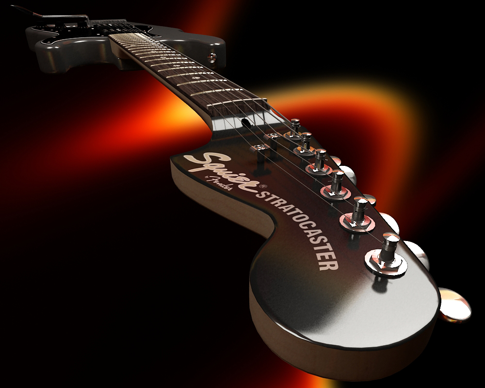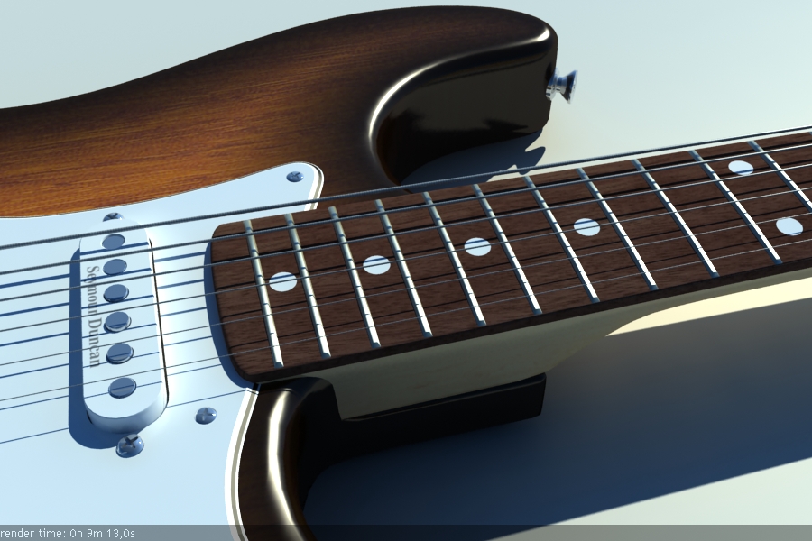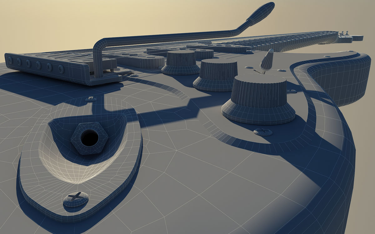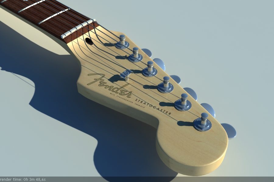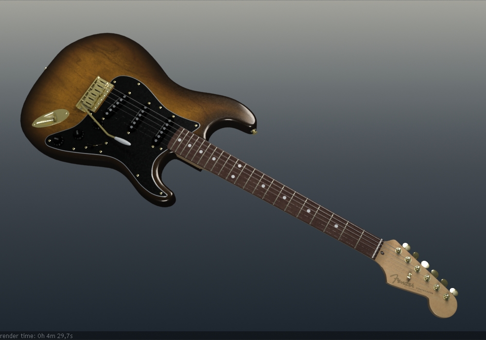Con respecto a lo del proceso no sé muy bien a lo que te refieres, si a detalles de las mallas de cada uno de los componentes de la guitarra o al paso a paso desde el comienzo de su creación (esto último creo que sería más complicado a estas alturas, habiendo sido además un proceso de aprendizaje en el que he ido adelante y atrás en numerosas ocasiones). De momento lo que puedo hacer es ponerte los blueprints que usé en principio para modelar (faltan el de algunos detalles como el puente, el clavijero, en estos casos me fui fijando en fotografías que encontré por internet y en mí propia Fender, que, si no lo he dicho aún es como la de la derecha del todo de la composición).