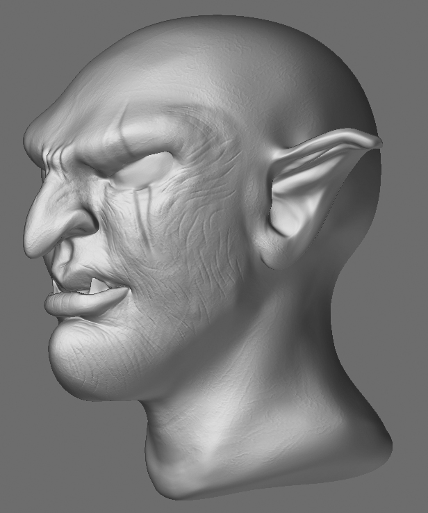 Voidreamer, muchas gracias por los ánimos. Bueno, aquí os pongo nuevos avances. He corregido un poco los colmillos y la boca y he comenzado a poner arrugas, aunque la verdad es que creo que me voy a tener que mirar algún tutorial para aprender a hacerlas, porque me da que no lo estoy haciendo de la manera óptima.