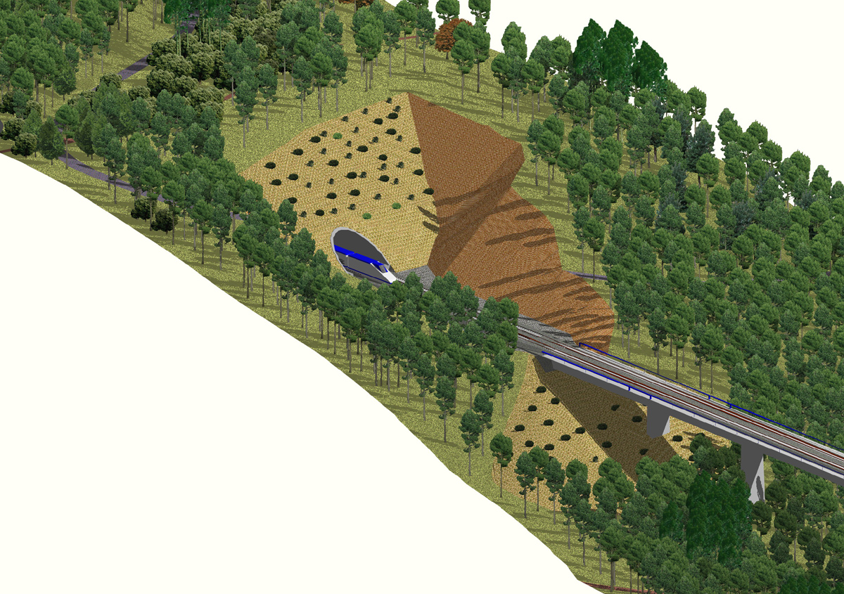 He encontrado este ejemplo. Bien aquí se puede ver la montaña, y como veis se ve en principio toda verde, con una textura de hierba. Luego se ve la excavación en la montaña, donde entra el túnel, y ahí se ve otra textura, y luego aparte se puede ver cómo por la parte superior, tras unos árboles, ahí unos caminitos, y también por la parte inferior del puente, ahí otro tipo de material distinto a la hierba. Pues esto es más menos lo que necesito saber cómo se hace, pues yo ahora mismo tengo un solido 3d que representa esto, la montaña con el agujero de la excavación, y no sé si ahí una manera de texturizar y mapear todo el solido de una vez haciendo estas diferencias, o si tengo que apañarme para conseguir nuevos sólidos, o caras, o lo que sea distintas al solido original, sobre el cual meter el material que yo quiera con la forma que yo quiera. No sé, a ver si alguien puede ayudarme con trucos o cómo lo haría el o algo así. Muchas gracias. Saludos.